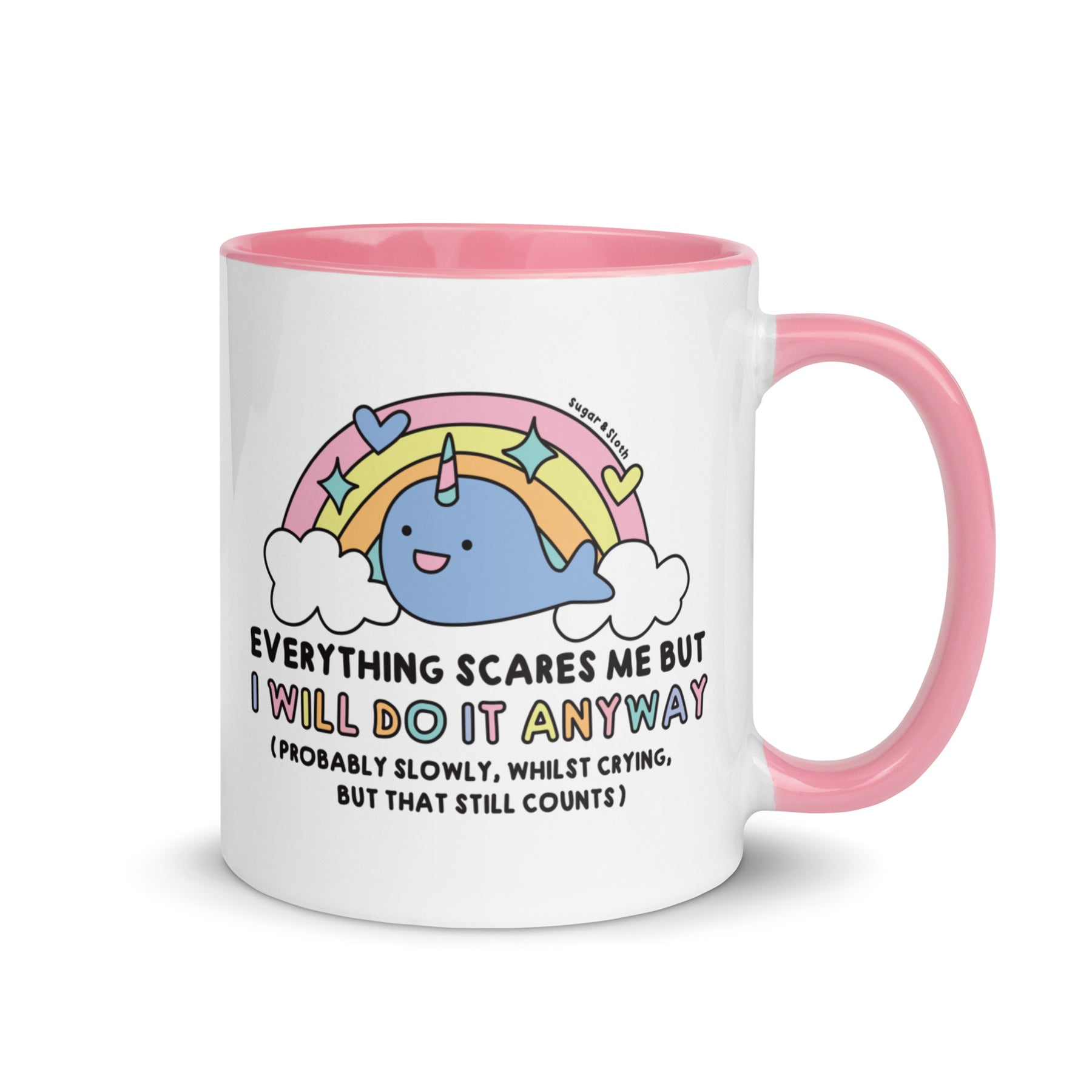 Everything Scares Me But I Will Do It Anyway Ceramic Mug with Coloured Handle